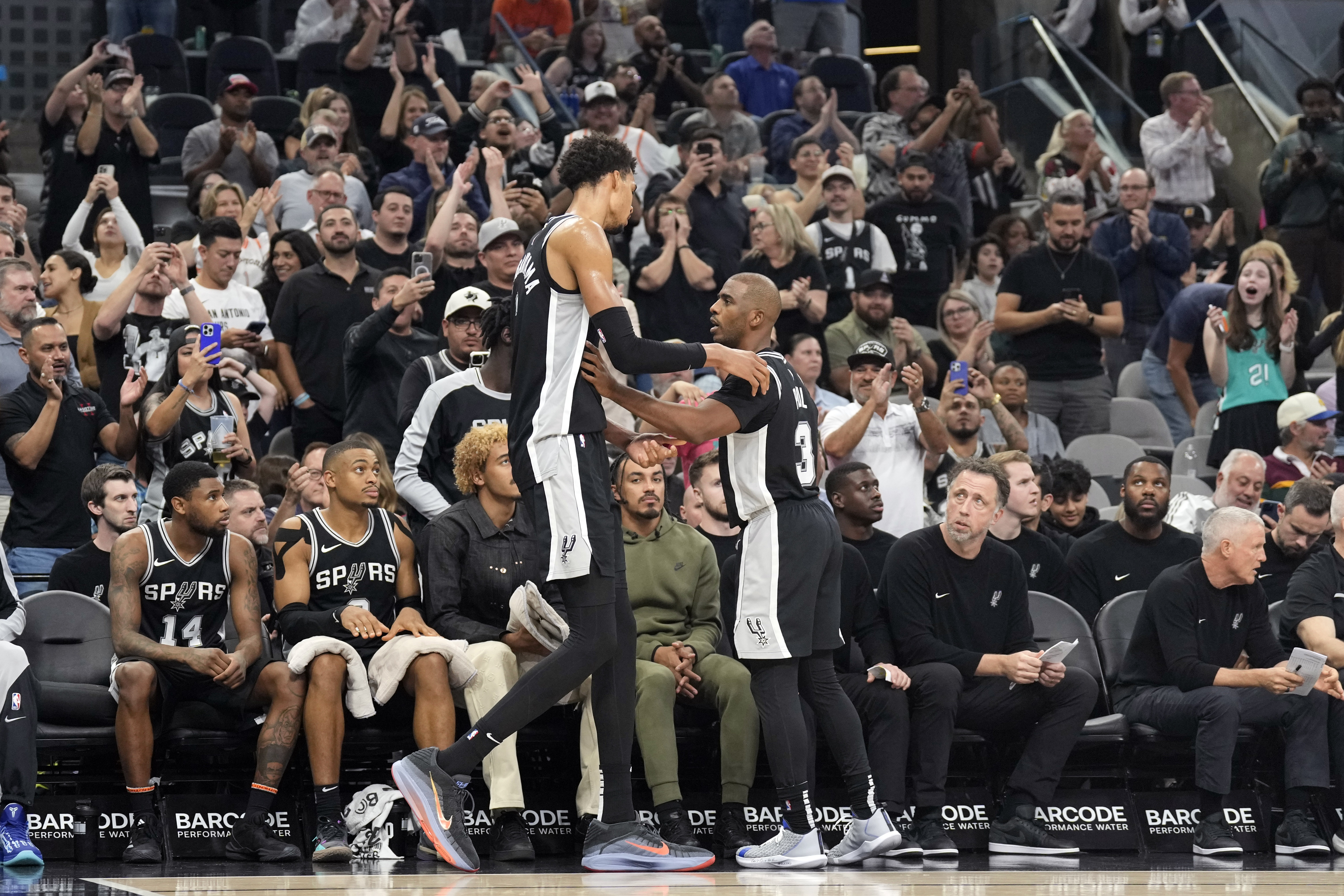 此役,保羅出戰(zhàn)32分鐘,投籃4中4,三分球3中3,罰球1中1,拿到12分7籃板8助攻4搶斷1蓋帽;文班出戰(zhàn)37分13秒,24投13中,三分15中7,罰球12中9,爆砍42分6籃板5助攻2搶斷4蓋帽。